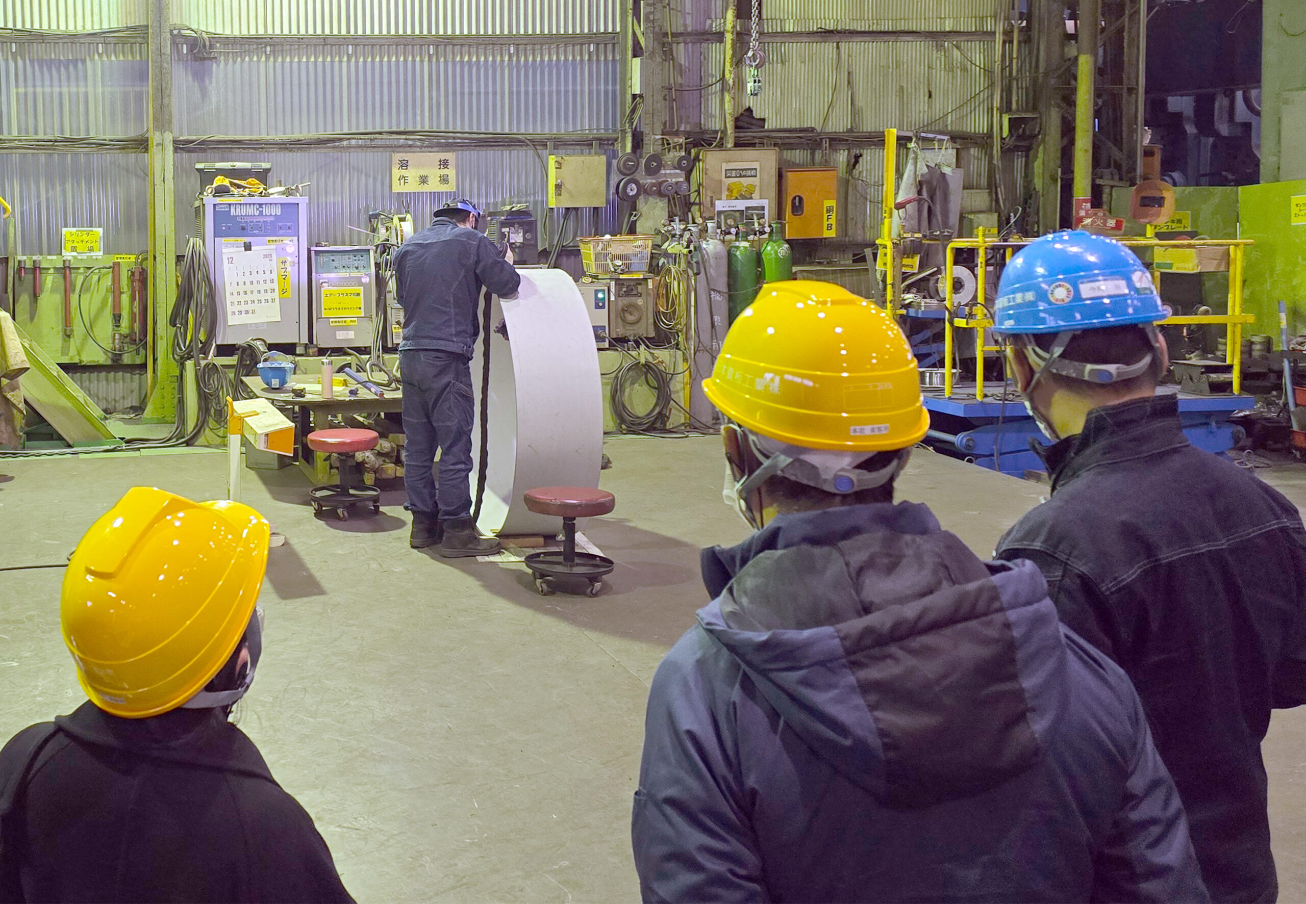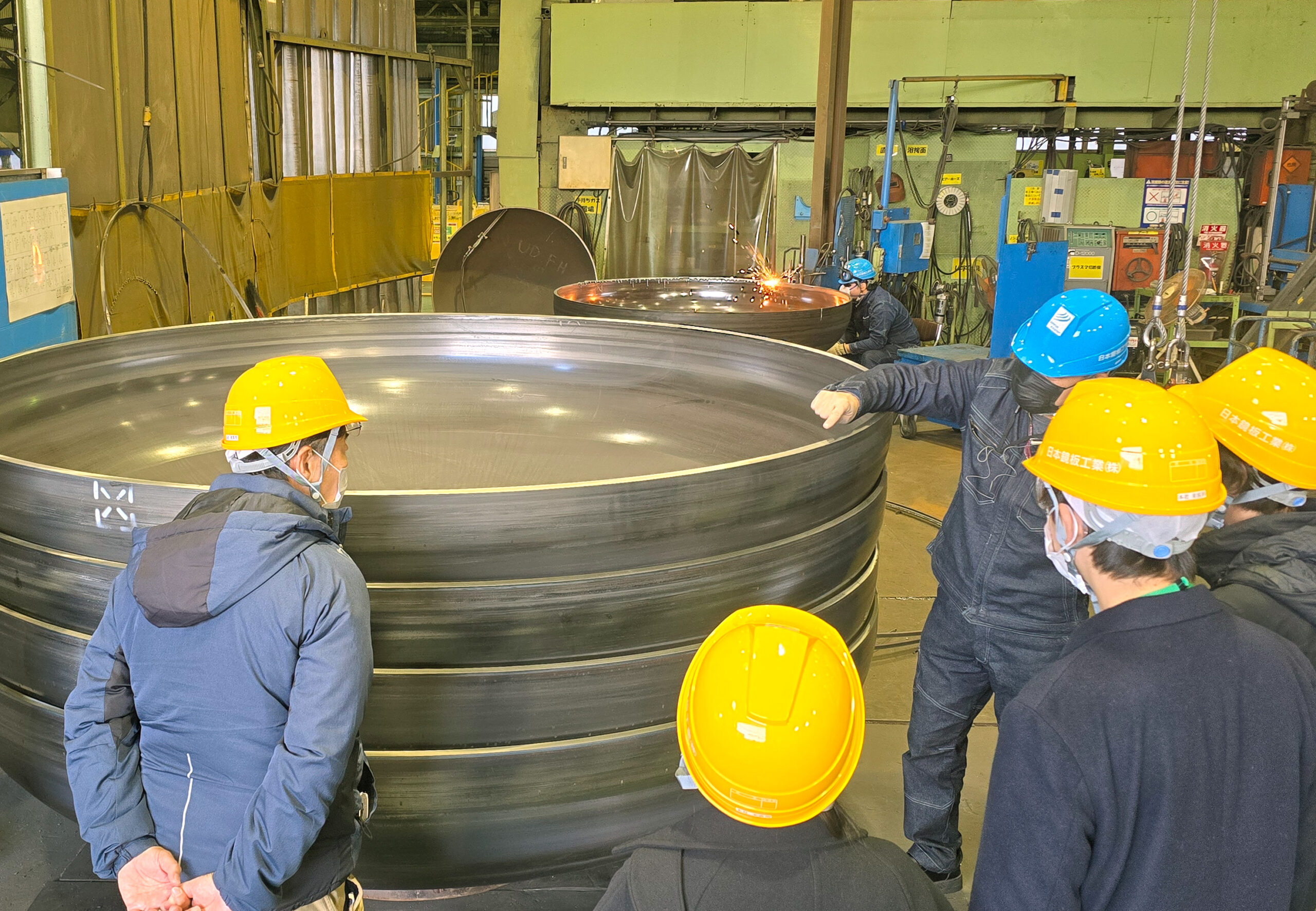 巨大なプレス機や、鏡板が成形される光景を目の当たりにし、参加者の皆様もその迫力に興味津々の様子で見入っておられました。