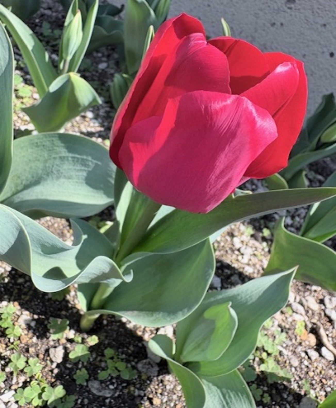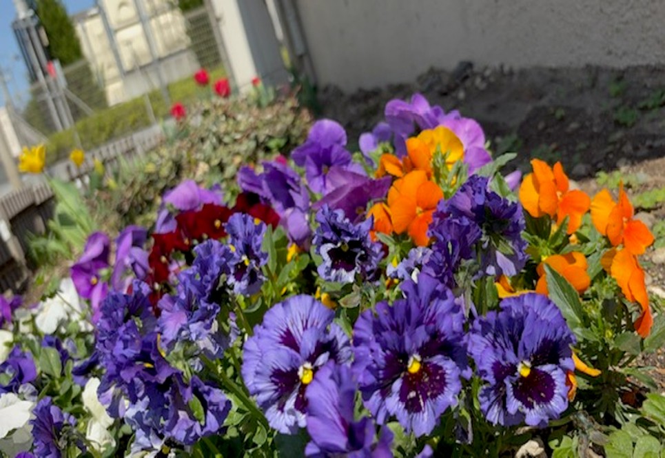 また、追加で植えたチューリップも咲く季節となり、鮮やかな赤色や黄色が目を引き、職場周辺に明るく前向きな印象を与えてくれています。