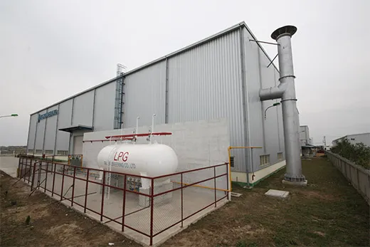 The convection-type car bottom heat treatment furnace, the exhaust duct, and the stack were designed by Rozai Kogyo and manufactured by RK ENGINEERING, while the LPG tank and supply system were designed and manufactured by Vietnamese staff of RK ENGINEERING.